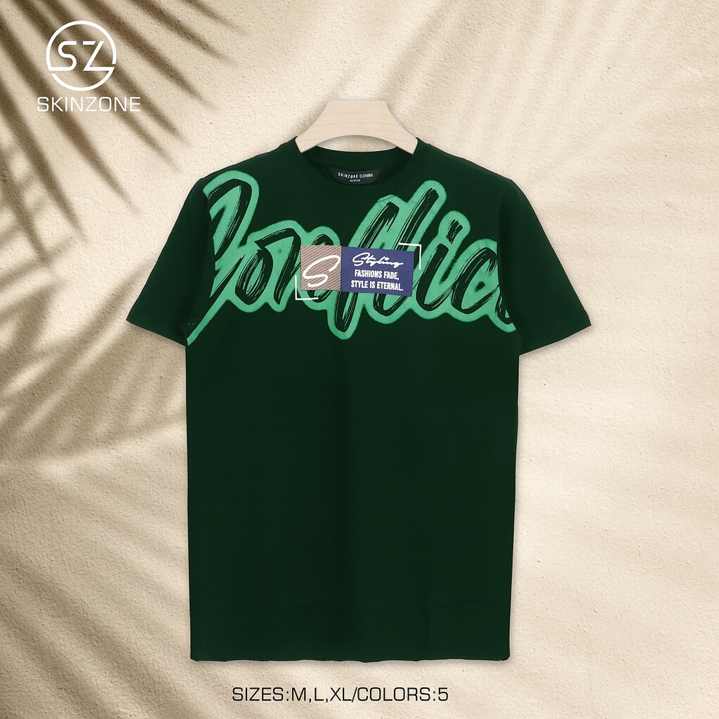 Dark Green Tee With Oversized Graffiti-Style Script And “Style Is Eternal” Quote Patch