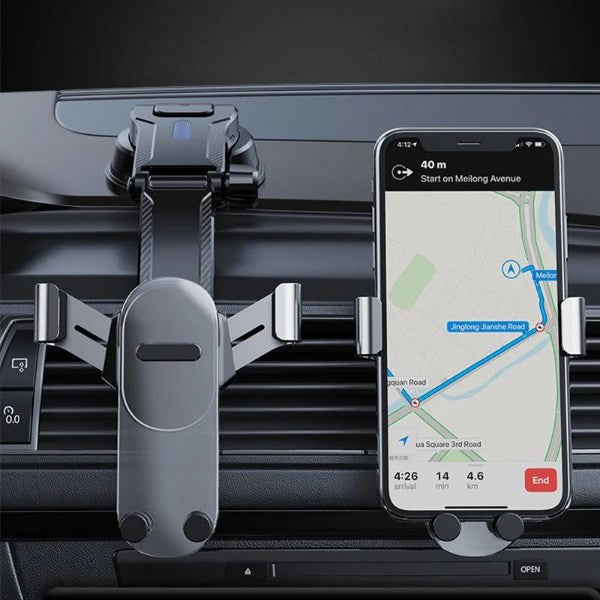 āļø Gravity-sensing auto clamp grips your phone instantly and releases it with one hand