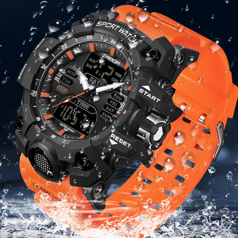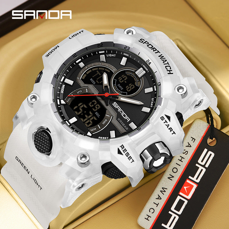 Sanda Dual Display Sports Watch With Waterproof And Glow Features