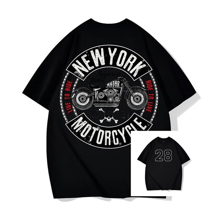 ๐๏ธ Features bold motorcycle print with skull and engine art for biker flair